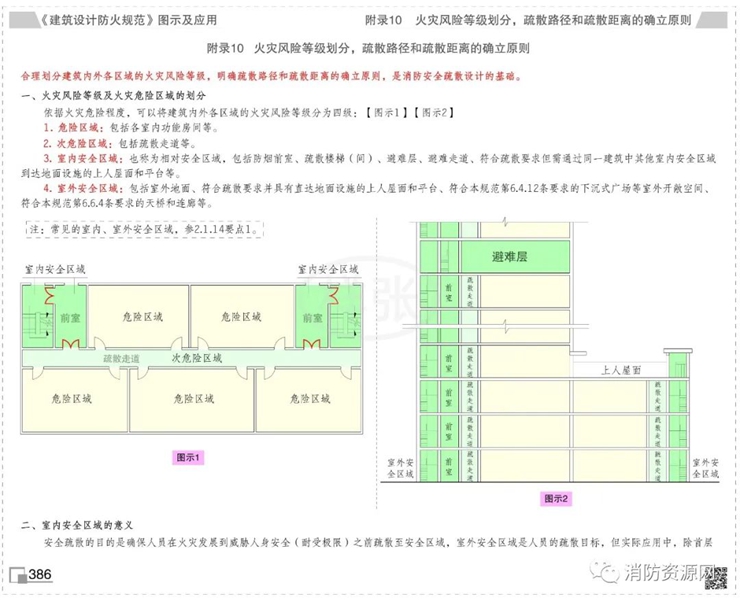 3. 室內(nèi)安全區(qū)域:也稱為相對(duì)安全區(qū)域,包括防煙前室、疏散樓梯(間)、避難層、避難走道、符合疏散要求但需通過同一建筑中其他室內(nèi)安全區(qū)域到達(dá)地面設(shè)施的上人屋面和平臺(tái)等。